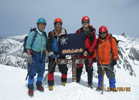 | 北穂高岳山頂、下山し涸沢小屋で握手 | 4/30-5/3 北アルプス 涸沢ベース | |